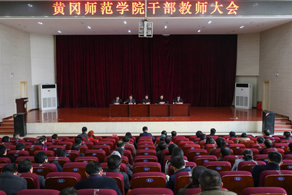 赵斌代表市委对黄冈师范学院领导班子建设提出四点要求:一是必须提高政治站位。要深刻学习领会党的十九大精神,准确把握教育事业面临的新形势新任务新要求,把全体教职员工的思想和行动统一到党的十九大精神上来,自觉用习近平新时代中国特色社会主义思想武装头脑、指导实践、推动工作。二是必须维护班子团结。要坚持和完善党委领导下的校长负责制,依法落实党委、校长职权,认真落实民主集中制的各项要求。三是必须切实改进作风。学校领导班子成员要切实增强标杆意识、发挥表率作用,切实增强服务意识,深入师生中间去,深入教学科研一线去,将思想政治工作、教学工作、教师学生工作做好做实。四是必须保持廉洁自律。要贯彻全面从严治党的各项规定,自觉执行党的各项纪律,树立廉洁自律的良好形象。