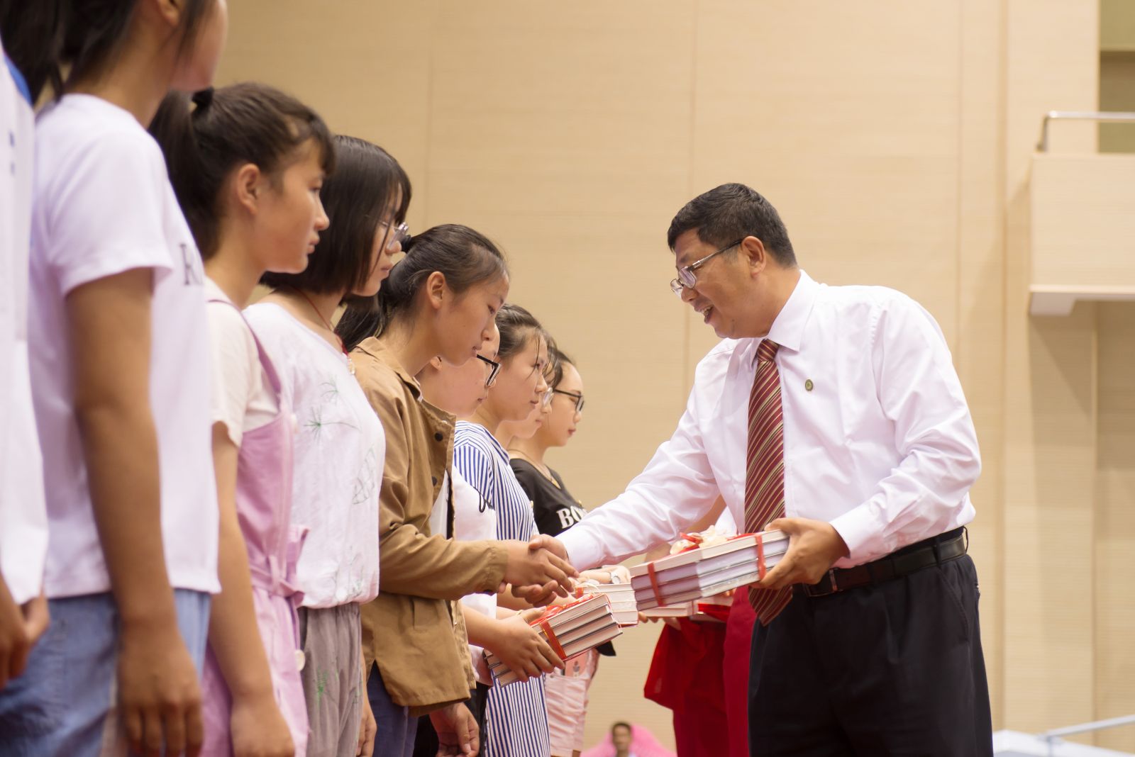 学校精心策划了生日赠书活动,认真挑选书籍,系上精致的红丝带,校党委书记王立兵还在书的扉页里写下了祝福,作为礼物赠送给开学典礼当天过生日的18位学生,“爱国当忧国、忧国当自强”“要始终明白我们从哪里来,要到哪里去”“学会爱、学会独立、找到真正的自我”“不忘初心,方得始终”“努力做一个骨头硬的人”“守本真心”“人生如梦,筑梦黄师”等谆谆教诲,勉励学子们在今后的学习生活中,不忘读书,多读书,读好书,并把这种热爱读书的精神传递下去,营造好学向上的良好氛围。