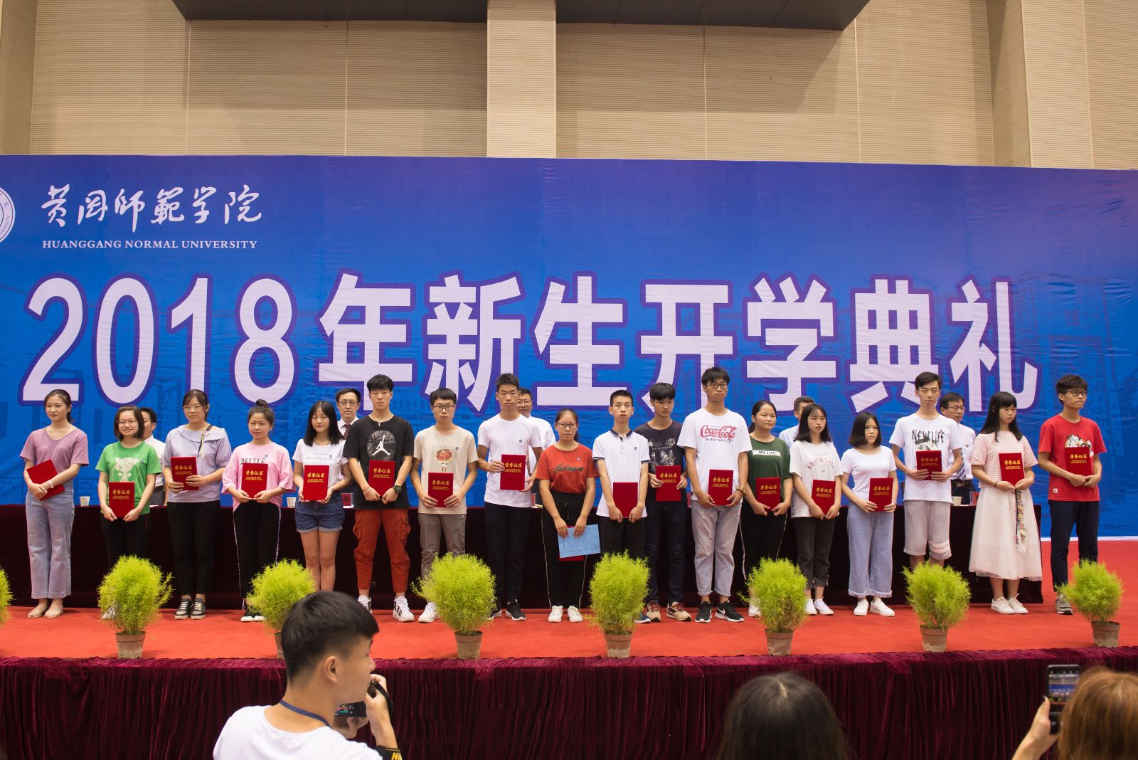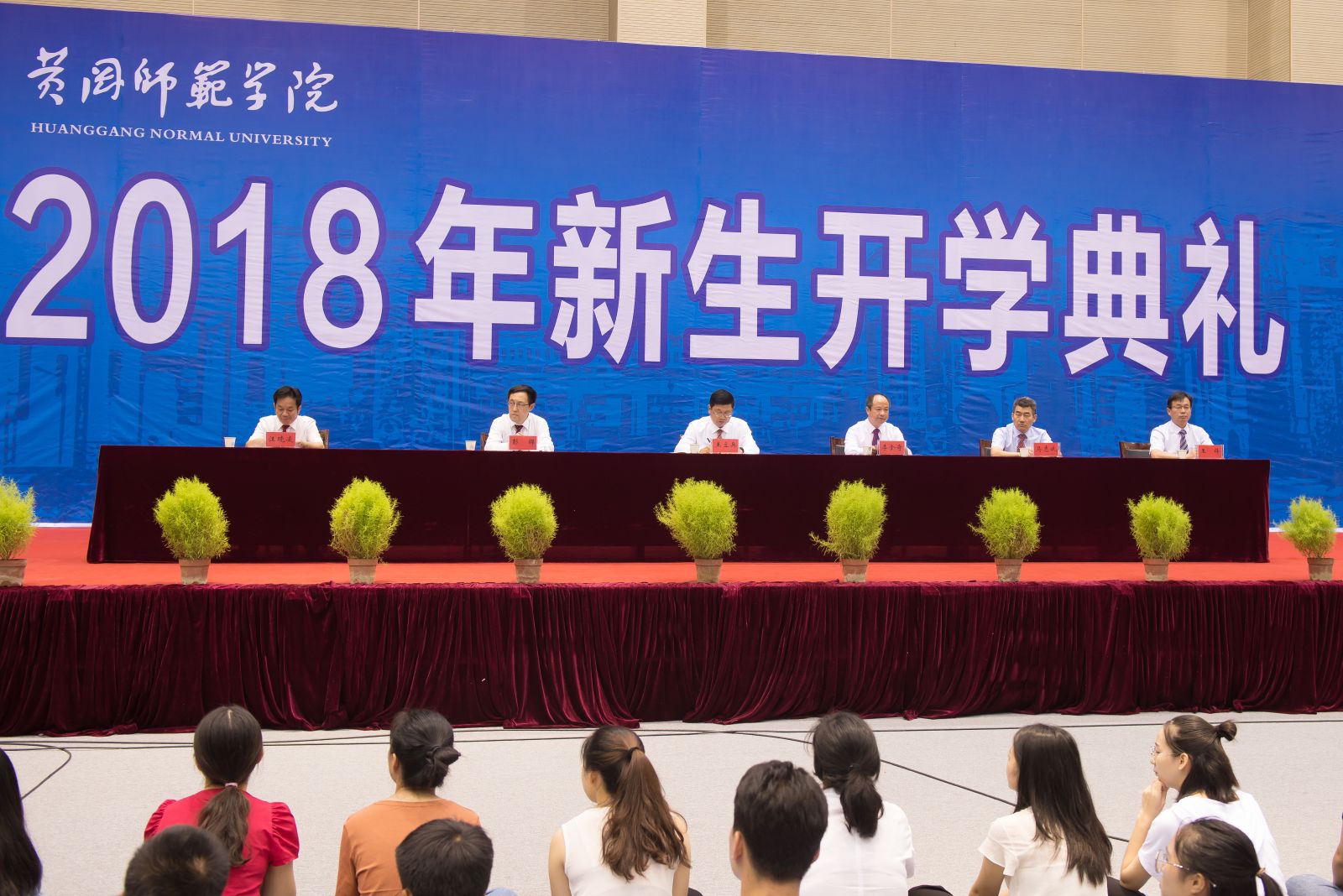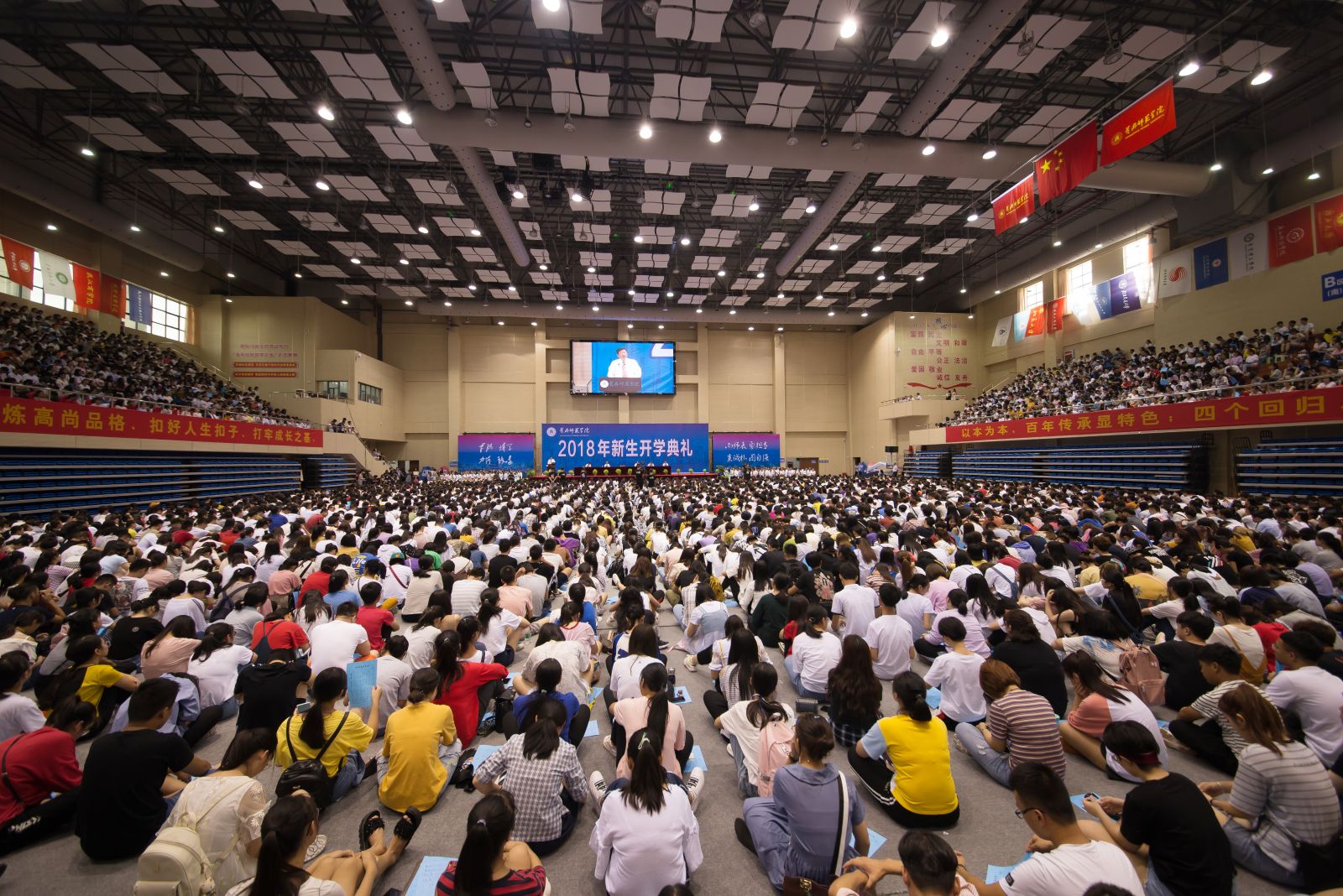 开学典礼首次在新落成的体育运动中心举行。整个仪式隆重而简朴,场面宏大而壮观。场内人头攒动,不断切换的现场直播画面,记录了一个个生动的瞬间。新生们的脸上写满喜悦、期待,他们聆听着师长的谆谆教诲,佩戴上崭新的校徽,吟唱着铿锵有力的黄师校歌,确认过眼神,他们成为黄师的新主人,他们将勤读不辍,追求卓越,用智慧和汗水谱写青春最美丽的华章!