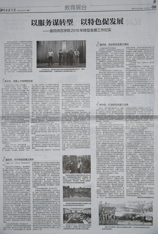 本网讯 12月13日,《中国教育报》第8版教育展台以题为《以服务谋转型 以特色促发展》深入报道我校不断探索应用型高校发展路径。文章从“抓合作,探索人才培养新机制”、“重服务,抓牢转型发展之根本”、“强师资,夯实转型发展之基础”、“炼特色,打造转型发展之品牌”四个层面报道我校多措并举,扎实推进转型发展试点工作,态势良好,成效显著。