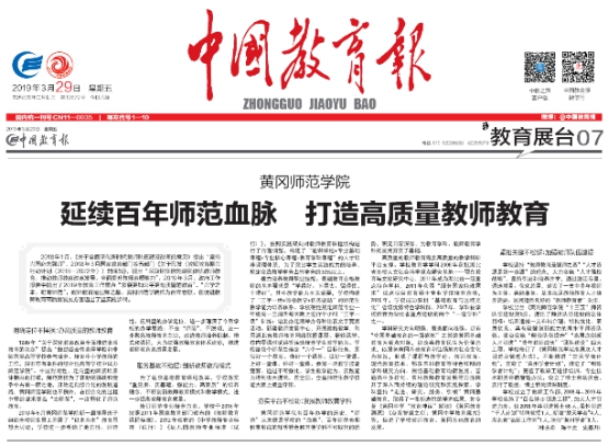本网讯 3月29日,《中国教育报》第7版以《黄冈师范学院:延续百年师范血脉 打造高质量教师教育》为题,从明确定位不摇摆:办高质量的教师教育;服务基教不动摇:创新教师教育模式; 夯实平台不松劲:发展教师教育学科;紧扣关键不松懈:加强教师队伍建设;报道我校作为百年老校,在促进教师教育高质量发展方面迈出了坚实的步伐。