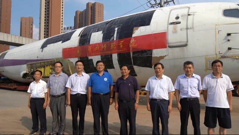 本网讯  731日下午,一架波音737-300型教学飞机从天津运抵我校。这标志着我校“民用航空从业人员技能实习实训基地”项目建设进入一个新阶段。校党委书记王立兵、校党委副书记、校长陈向军,及其他全体校领导到校门口迎接飞机到来。