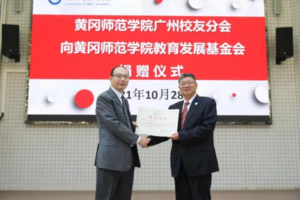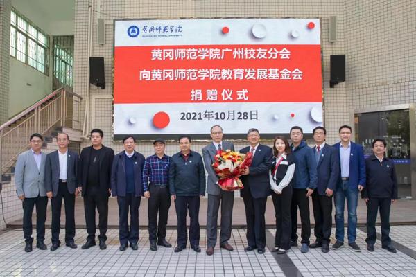 本网讯 饮水思源,感恩永存。10月28日上午,黄冈师范学院广州校友分会向学校教育发展基金会捐赠仪式在北校区青春舞台隆重举行。广州校友分会会长、广州柏杰电子科技有限公司董事长崔川,广州校友分会秘书长、广州仰学教育有限公司总经理吕东坡,广州校友分会执行会长、广州飞升信息技术有限公司董事长成钢,广州柏杰电子科技有限公司副总经理曾宜丰,广州校友分会副会长、深圳卓凡教育管理有限公司人力资源总监陈凡,广州校友分会副会长、卓凡教育管理有限公司东莞分公司总经理孟荣参加捐赠仪式。校党委书记王立兵,党委副书记、校长陈向军,党委副书记、学校教育发展基金会理事长陈朝阳,党委副书记、纪委书记、监察专员王基家,党委常委、副校长宋文生,党委常委、副校长夏庆利,党委常委、校长助理汪晓凌出席捐赠仪式。陈朝阳主持捐赠仪式。