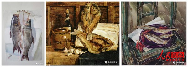 打开松涛的画集,展现在我们面前的是深沉而淳朴的风情。原始而神秘的陶瓷,淳朴的兰印花布,大红的草莓,还有那干鱼、腊肉、松果、干莲蓬、废旧铁桶等,这些平时不起眼的东西在松涛画笔下皆可成趣。不难看出,乡土气息浓郁,既不是宫廷富贵的气象,也不是雅士的复古和孤傲,而是今天平凡百姓家充满光照的一角,是画家对自然的敬畏与思考。在这些年的创作中,他似乎一直执着于通过鱼的视觉演绎来表达对生命的感悟。从水中的游鱼,到静物台上的鲜鱼;再从风干的鱼到远古化石中的鱼,鱼成了他关照生命的符号和载体。体悟生命的本真,追求人间的大爱,是艺术深度的体现,也是艺术家对艺术价值的思考。