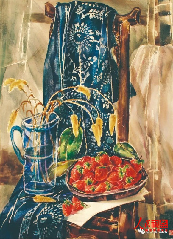 二是对水彩语言的时代性追求。虽然他对古典绘画理论素有研究,但摒弃了“应物象形”、“随类赋色”的古典绘画观念,而是从感受出发,超越了客观和西方传统水彩定势,从而获得了极大的自由,也呈现出鲜明的时代性。一个画家专画一种题材,自成一体,不难精益求精,但像松涛这样从题材到技法随时变化,经常出新,没有大智大勇是不可能做到的。如被湖北省美术馆收藏的水彩静物《瓶》就很现代,画面甚有情味,这种艺术探索一直延续至今。