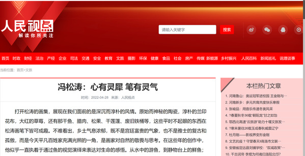 【媒体黄师】《人民视点》:冯松涛:心有灵犀 笔有灵气