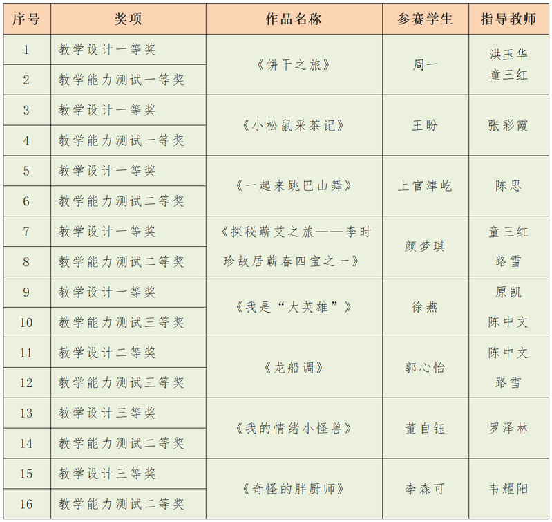 本网讯 近日,在山西师范大学举办的第十一届“华文”师范院校学前教育师范生教学能力测试与交流展示活动中,教育学院8名参赛选手进入决赛,经过激烈角逐,喜获奖项16项,其中教学设计一等奖5项、二等奖1项、三等奖2项;教学能力测试一等奖2项、二等奖4项、三等奖2项;获奖层次及数量均位参赛高校前列。