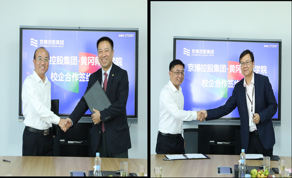会上,双方签署了《黄冈师范学院-山东京博控股集团有限公司战略合作协议》和《黄冈师范学院-山东京博控股集团有限公司产教融合实践育人基地建设协议》,商讨了未来黄冈师范学院与京博在人才培养、科技研发、科研成果转化和项目孵化等方面进一步深入合作的愿景和举措,共同勾勒了未来共建生态化工产业学院的美丽蓝图。