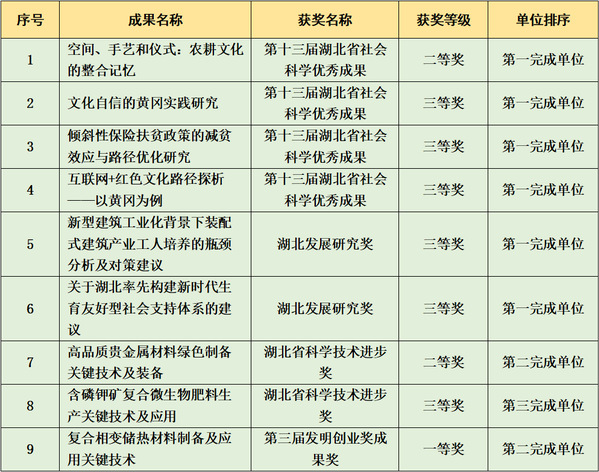 黄冈师范学院2022年省部级科研奖励获奖情况一览表