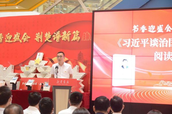 本网讯 为促进全民读书氛围养成,激发我市人民的阅读热情,提高阅读水平,鼓励广大人民群众“多读书,读好书”,从书籍中汲取智慧和力量,9月28日上午,由黄冈市全民阅读活动领导小组办公室、黄州区全民阅读活动领导小组办公室、黄冈市教育局、黄冈市文化和旅游局等单位联合主办的“书香迎盛会·荆楚谱新篇”活动在新华书店遗爱湖书城一楼开展。市委常委李初敏、市委宣传部副部长童俊出席活动。我校马克思主义学院思政2002班学生甘洪瑶作为高校学生代表参加了此次活动。