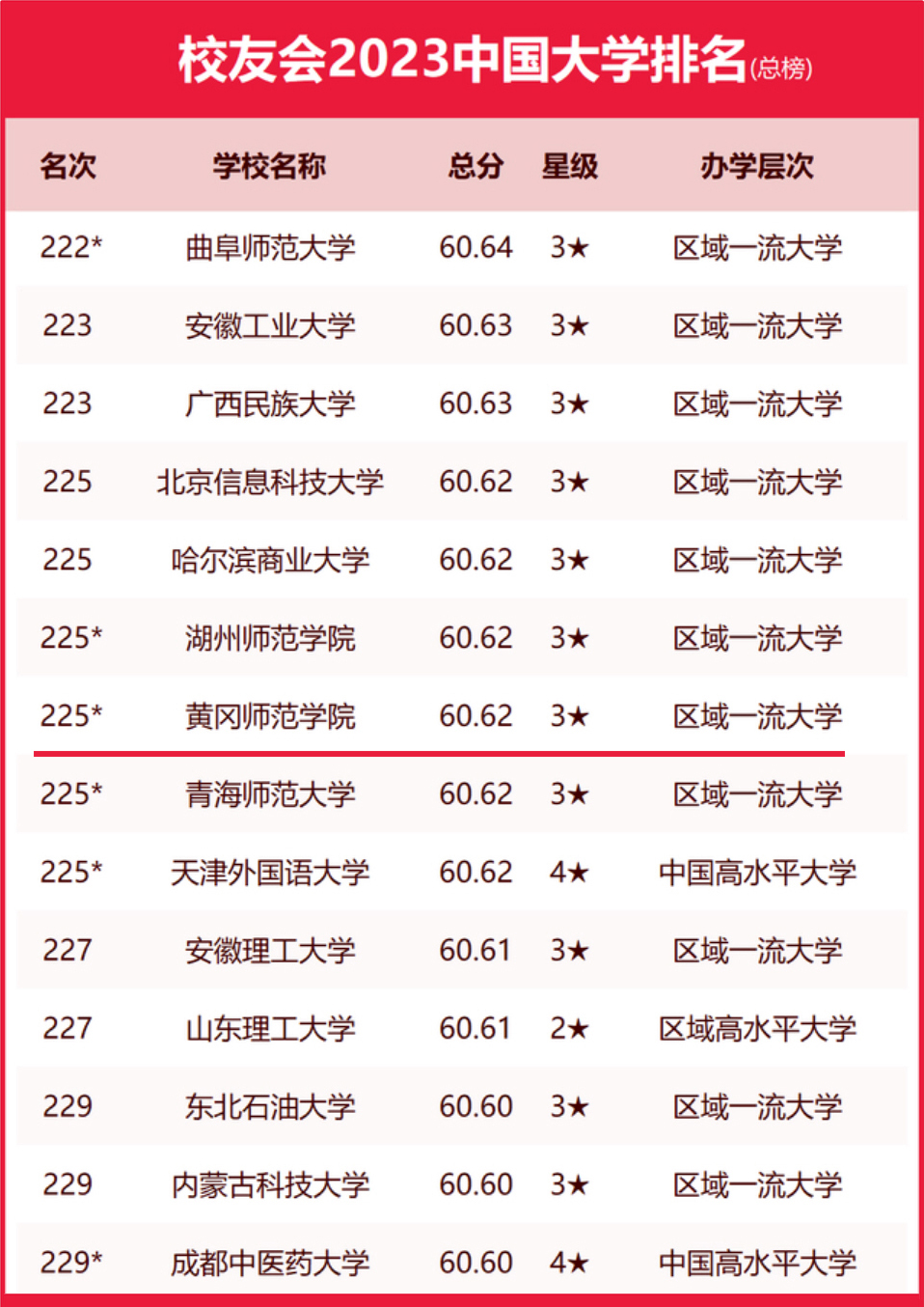 本网讯 4月6日,全国第三方大学评价机构艾瑞深校友会网(Cuaa.Net)正式发布2023中国大学排名榜单,我校位居全国第225位,较去年提升31位,连续4年创造历史最好成绩。