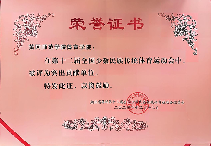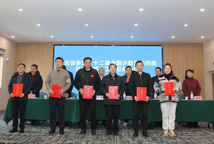 本网讯 12月13日,湖北省参加第十二届全国少数民族传统体育运动会工作总结大会在武汉市召开,湖北省体育局党组成员、副局长骆启义,湖北民族宗教事务委员会党组成员、副主任赵军章等出席会议。我校体育学院获评第十二届全国少数民族传统体育运动会突出贡献单位。我校体育学院教师黄高松,音乐学院教师徐敏,体育学院学生白学详、张英武被评为突出贡献个人。
