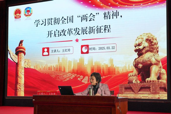 王红玲以深厚的理论功底和丰富的实践经验,从全国两会情况、两会记者会情况、习近平总书记重要讲话精神、2025主要预期目标、2025年重点工作、两会涉台内容、我省传达学习情况、践行两会精神等八个方面,全面系统地阐释了全国两会精神的核心要义、深刻内涵。王红玲指出,这次全国两会是在“十四五”规划收官之年召开的一次十分重要的会议,会议取得一系列丰硕成果。习近平总书记先后参加江苏代表团审议、看望政协委员并参加联组会、出席解放军和武警部队代表团全体会议,发表一系列重要讲话,内涵丰富、思想深邃,为我们做好各项工作、推进中国式现代化提供了行动指南。王红玲强调,要深刻领会精神,统一思想行动;要聚焦重点工作,推动落实见效;要强化学习宣传,推动全面落实。