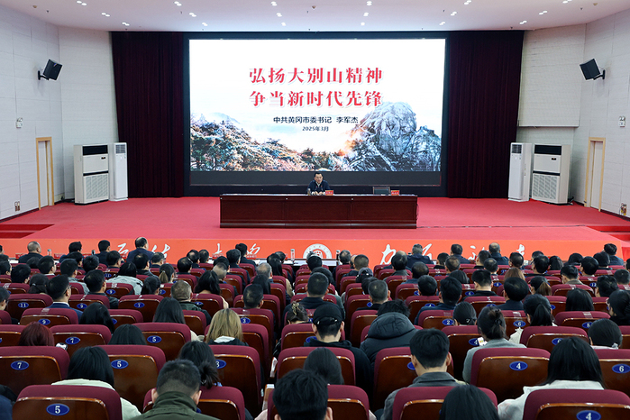 本网讯 3月28日,市委书记李军杰以“弘扬大别山精神,争当新时代先锋”为主题为我校师生讲授思政课。他号召广大青年要深入学习贯彻习近平新时代中国特色社会主义思想,弘扬大别山精神,赓续红色血脉,勇担时代使命,主动把人生理想、个人梦想融入强国建设和民族复兴伟大事业之中,努力创造无悔于青春、无愧于时代的新业绩。