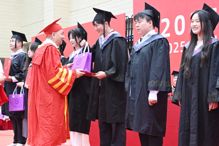 校领导为2025届优秀毕业生代表颁发荣誉证书。