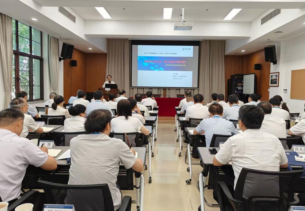 本网讯 为贯彻落实湖北省委“干部素质提升年”工作部署,全面推进高素质专业化干部队伍建设,7月7日至10日,我校2025年中层副职干部履职能力提升暑期培训班在全国干部教育培训浙江大学基地顺利举办。本次培训为期4天,共开展了4场专题讲座、3场现场教学、1次交流研讨。学校教学学院中层副职干部参加培训学习。