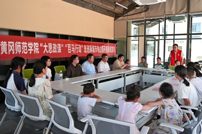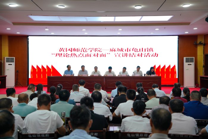 本网讯 7月24日,省委讲师团黄冈师范学院“百马”宣讲队赴麻城市龟山镇,成功开展“理论热点面对面”宣讲结对活动。省委讲师团主任姚亭华,校党委书记陈向军,党委常委、副校长宋文生,黄冈市社科联主席丁建怀,麻城市委常委、市委办公室主任、市委宣传部部长周斐出席活动。