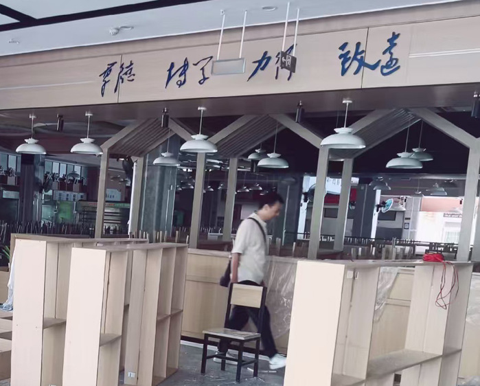 后勤产业集团积极探索校园餐饮服务育人模式,以师生需求为导向,积极将兰园餐厅改造为书香餐厅,工作人员不惧滚滚热浪,精心设计,对原餐厅的空间布局进行优化调整,加装了书架、书桌,力求营造出更具人文氛围的就餐环境,让广大师生在品尝佳肴的同时也能感受到浓厚的书香气息。