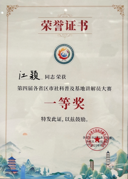 本网讯 9月24日,第四届各省区市社科普及基地讲解员大赛在浙江温州落下帷幕。在与全国93名优秀讲解员的同台竞技中,我校传媒与影视学院学生江颖表现优异,斩获佳绩,荣获全国一等奖。
