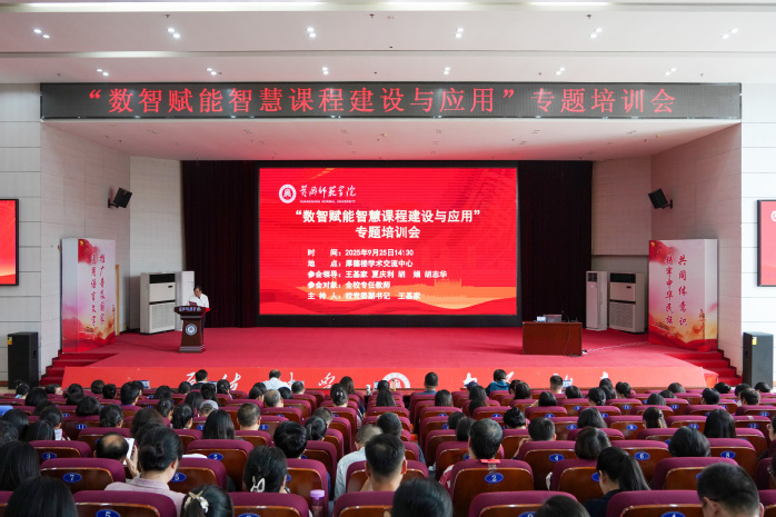 本网讯 为深入贯彻落实国家教育数字化战略行动,推动人工智能技术与教育教学深度融合,提升教师数字素养与智慧课程建设能力,9月25日,学校举办“数智赋能智慧课程建设与应用”专题培训。校党委副书记王基家主持活动,党委常委、副校长夏庆利,党委常委、纪委书记、监察专员胡娟,党委常委、副校长胡志华出席活动。