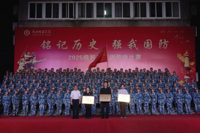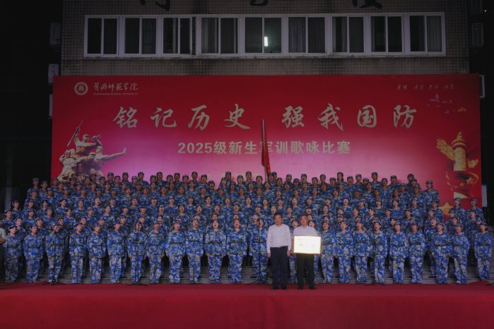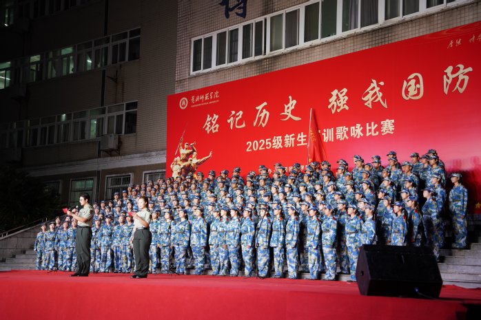本网讯 为深化爱国主义教育,弘扬革命精神,厚植家国情怀,9月25日晚,我校“铭记历史 强我国防”2025级新生军训歌咏比赛在庄严而热烈的气氛中举行。校党委书记陈向军,党委副书记、校长漆昌柱,党委副书记陈朝阳莅临现场指导观摩。