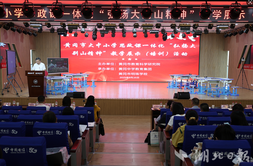 9月26日,由黄冈市教育科学研究院主办、黄冈中学教育集团承办,以“弘扬大别山精神”为主题的大中小学思政课一体化教学展示活动在黄冈市明珠学校举行。黄冈市委宣传部、黄冈市教育局及黄冈师范学院有关负责人参加活动,全市大中小学思政教研员及教师代表近200人参加。