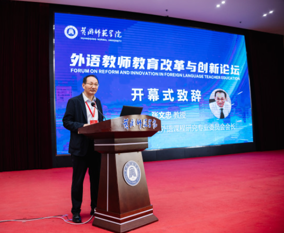 中国英汉语比较研究会外语课程研究专业委员会会长、南开大学张文忠教授在致辞中指出,当前外语教师教育面临新的机遇与挑战,论坛的举办不仅为共建共享、深化专业交流提供了重要平台,更为凝聚专业共识、激发思想碰撞、引领实践创新注入了新的动能。